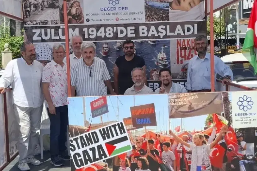 Bodrum İnsani Değerler Derneği Sumud Filosu'na destek için nöbet çadırı kurdu